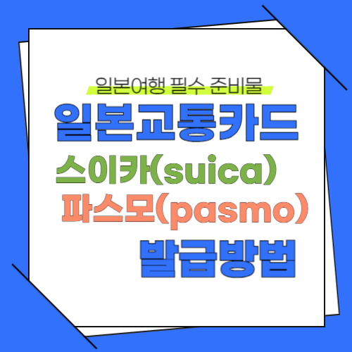 일본여행에서 편하게 대중교통을 이용할 수 있는 것이 교통카드입니다. 일본교통카드는 지역별로 다양한 카드가 있지만 도쿄를 중심으로 사용되고 있는 스이카와 파스모에 대해 발급방법과 사용방법에 대해 알려 드리겠습니다.