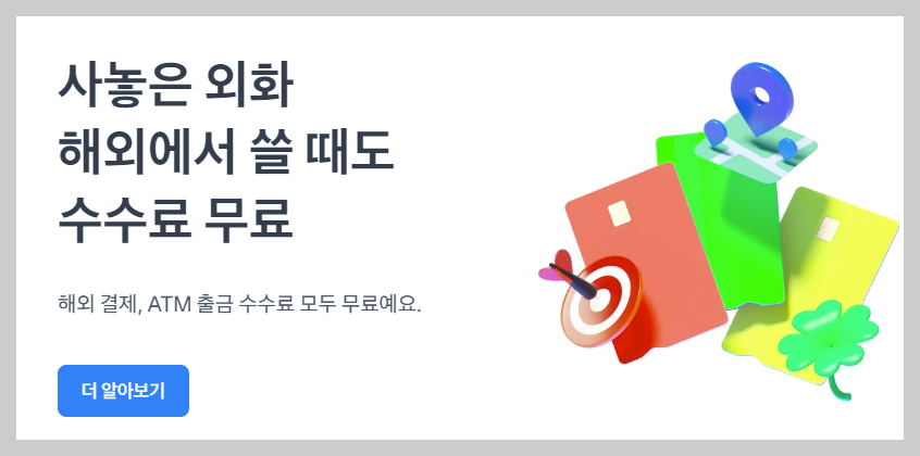 최근 많은 분들이 사용하는 토스 앱을 통해 외화통장을 개설한 후에 연계된 체크카드를 신청합니다. 현지에서 사용하기 위해 외화통장에 원화를 넣어두면 일본 현지에서 ATM기기를 찾아 체크카드를 넣으면 한글로 언어설정도 되기 때문에 편하게 사용할 수 있습니다.
