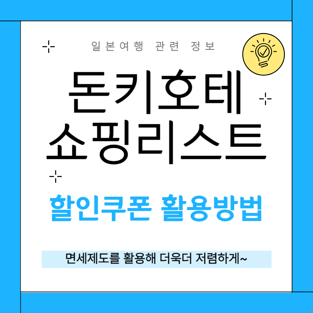 돈키호테에서의 쇼핑은 그 자체로 일본 여행의 하이라이트 중 하나입니다. 할인쿠폰과 쇼핑 리스트를 잘 활용해 보다 알차고 저렴하게 쇼핑을 즐기세요. 면세를 활용하여 다양한 상품을 합리적인 가격에 구매할 수 있는 기회를 놓치지 마세요!