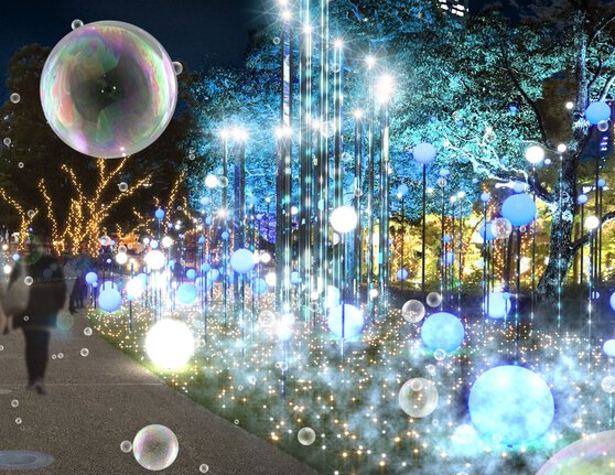 매년 많은 사람들이 방문하는 도쿄 미드타운의 크리스마스 일루미네이션입니다. 2024년은 'Ensemblewrap~겹겹이 포개져, 감싸는 빛~'을 컨셉으로 가든에 한 발을 내딛으면 무수한 빛이 몸을 감싸는 반짝이는 크리스마스를 선사합니다. 환상적인 눈의 세계로 초대하는 일루미네이션이 등장해 한정된 기간 동안 둥둥 떠다니는 물풍선과 눈이 내리는 특별한 연출도 체감할 수 있습니다.